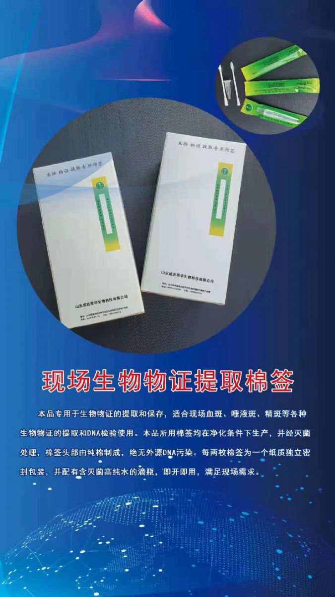 本品專用于生物物證的提取和保存,適合現(xiàn)場血斑、唾液斑、精斑等各種